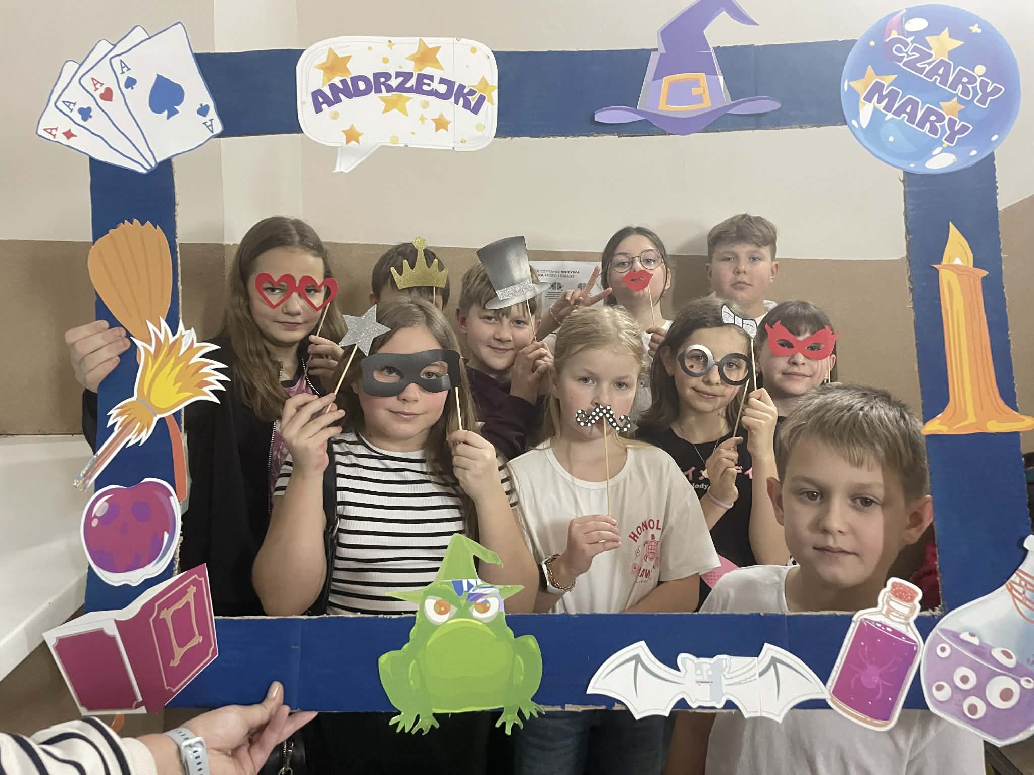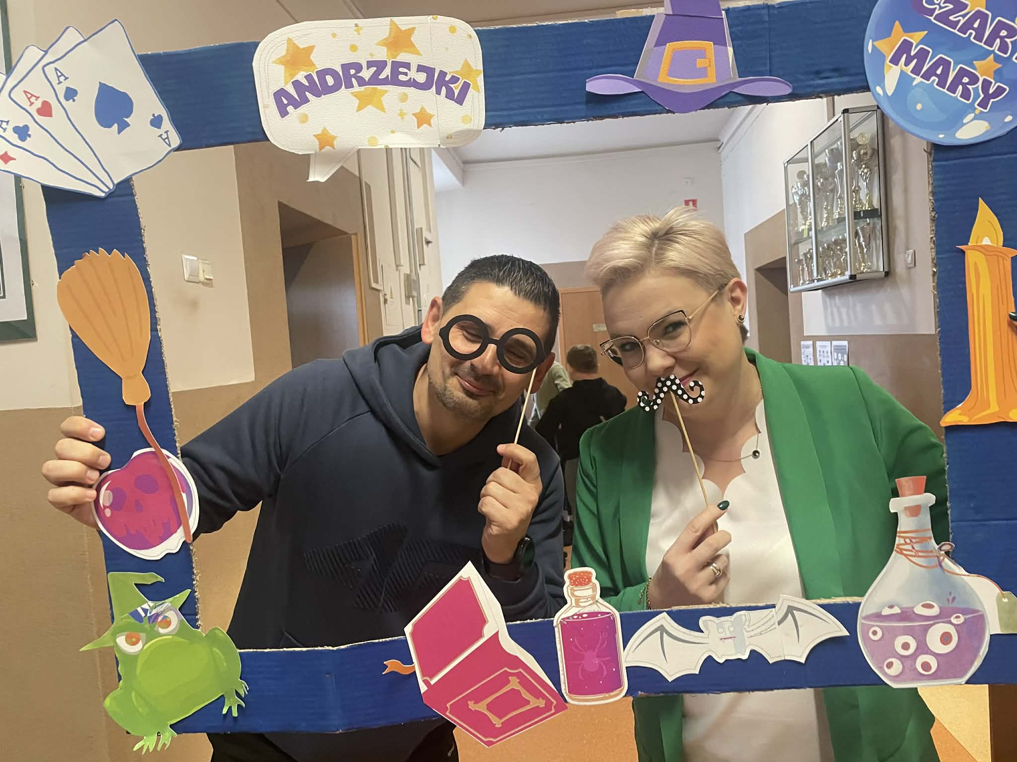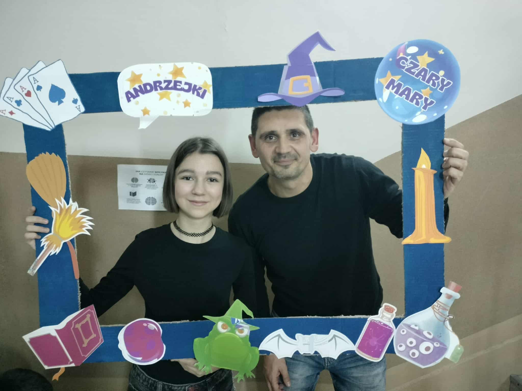 Wczorajsza dyskoteka przeszła nasze najśmielsze oczekiwania. Wszyscy bawili się świetnie przy najnowszych i nieco starszych hitach. W udekorowanym korytarzu pierwszego piętra uczniowie nie tylko tańczyli ale też śpiewali niemalże każdą piosenkę! Furorę zrobił wspólny taniec pani Moniki Kociołek z panem Sławomirem Stańczykiem wykonany w specjalnym kółeczku zrobionym przez uczniów, do tego oświetlonym latarkami smartfonów. Ale to nie jedyne andrzejkowe atrakcje. Bo zarówno podczas dyskoteki, jak i dziś, można było sobie zrobić zdjęcie w specjalnej „Andrzejkowej Ramce - Czary Mary". Dziś także odbywały się wróżby andrzejkowe. Zapraszamy do oglądania zdjęć.