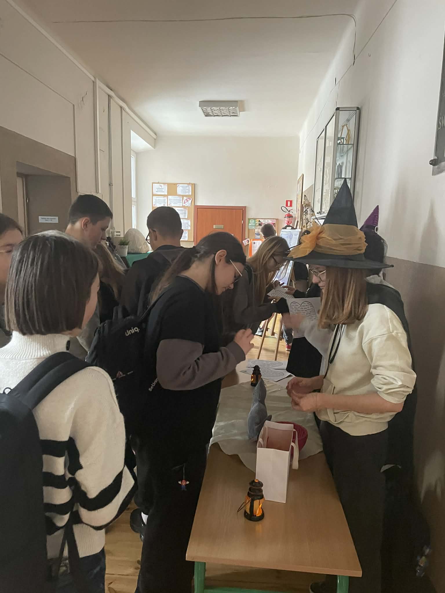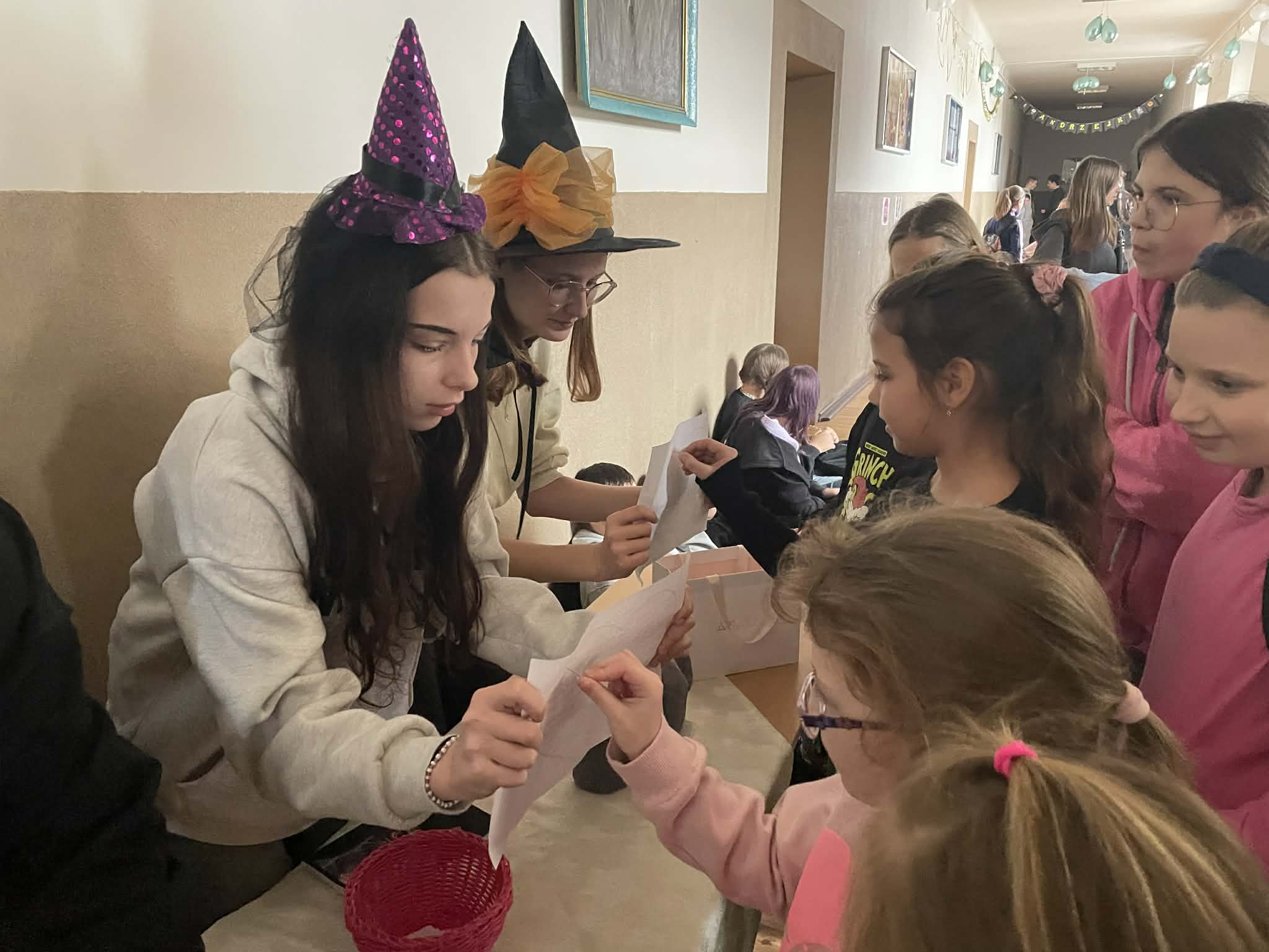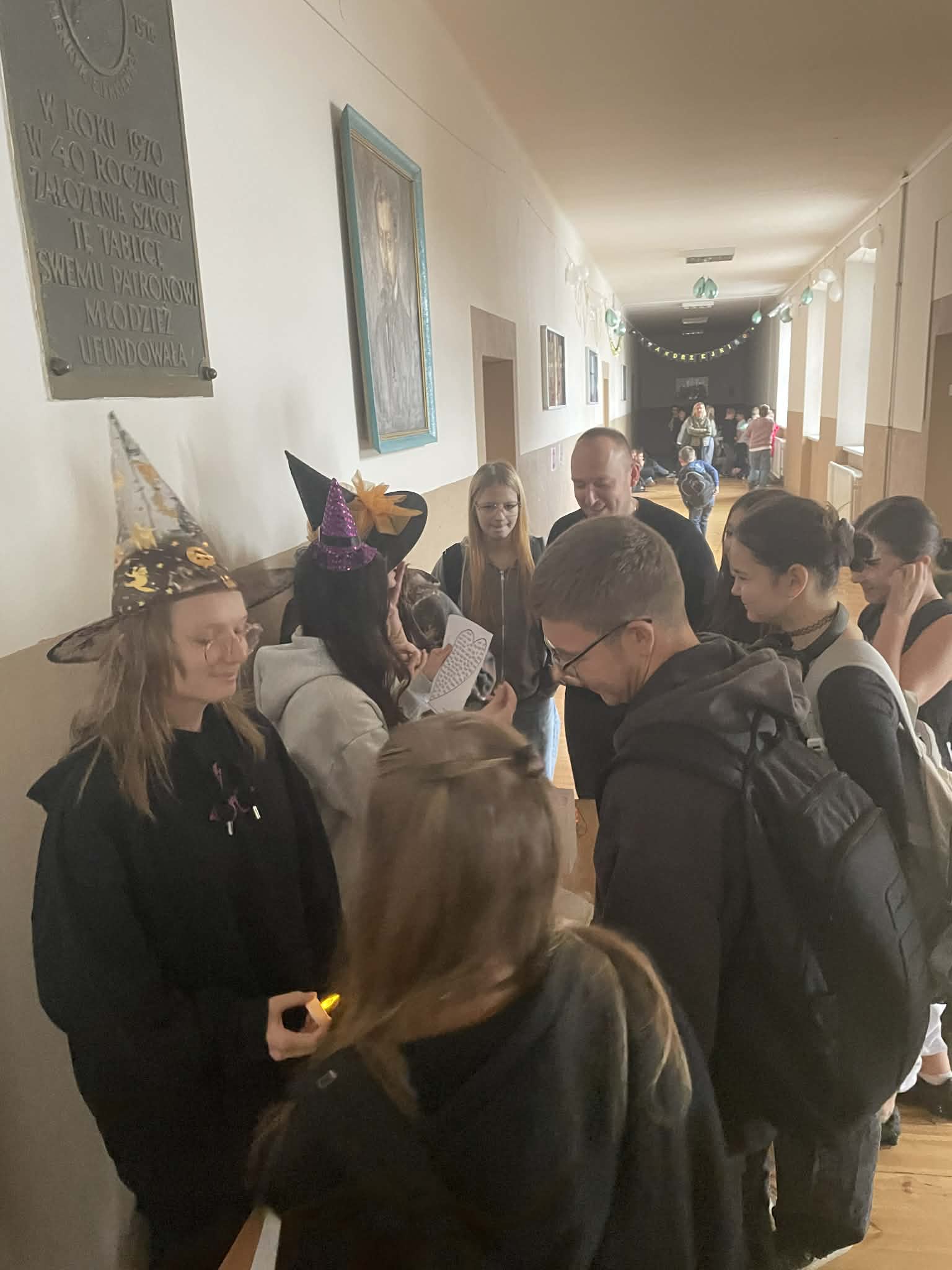 Wczorajsza dyskoteka przeszła nasze najśmielsze oczekiwania. Wszyscy bawili się świetnie przy najnowszych i nieco starszych hitach. W udekorowanym korytarzu pierwszego piętra uczniowie nie tylko tańczyli ale też śpiewali niemalże każdą piosenkę! Furorę zrobił wspólny taniec pani Moniki Kociołek z panem Sławomirem Stańczykiem wykonany w specjalnym kółeczku zrobionym przez uczniów, do tego oświetlonym latarkami smartfonów. Ale to nie jedyne andrzejkowe atrakcje. Bo zarówno podczas dyskoteki, jak i dziś, można było sobie zrobić zdjęcie w specjalnej „Andrzejkowej Ramce - Czary Mary". Dziś także odbywały się wróżby andrzejkowe. Zapraszamy do oglądania zdjęć.
