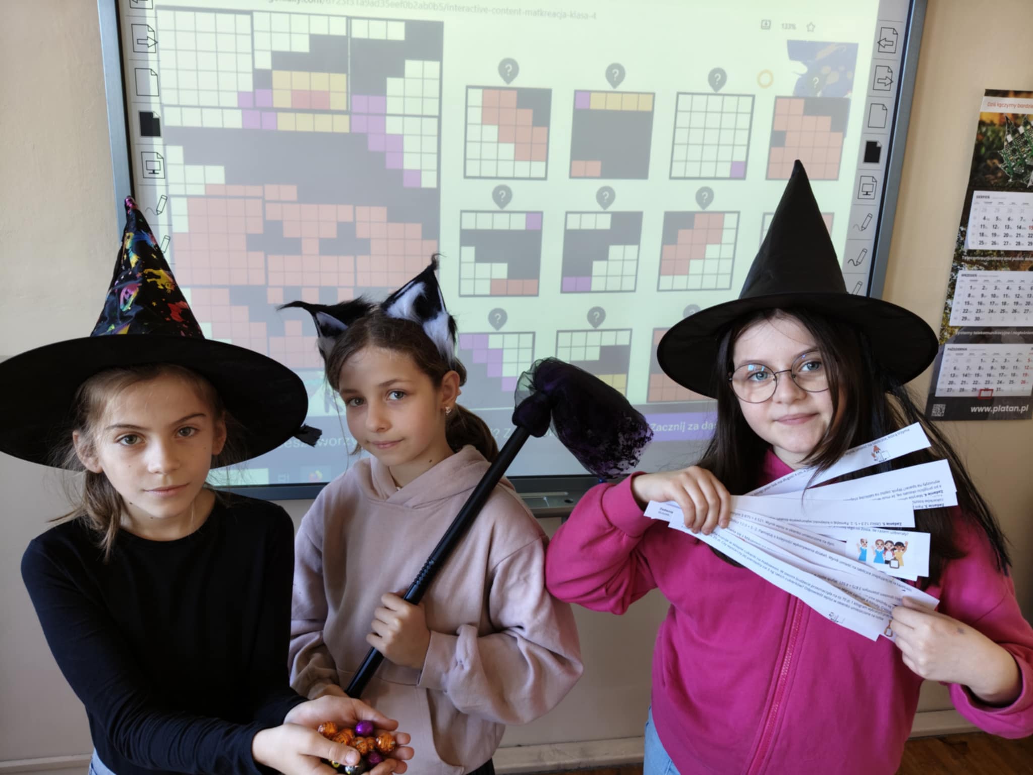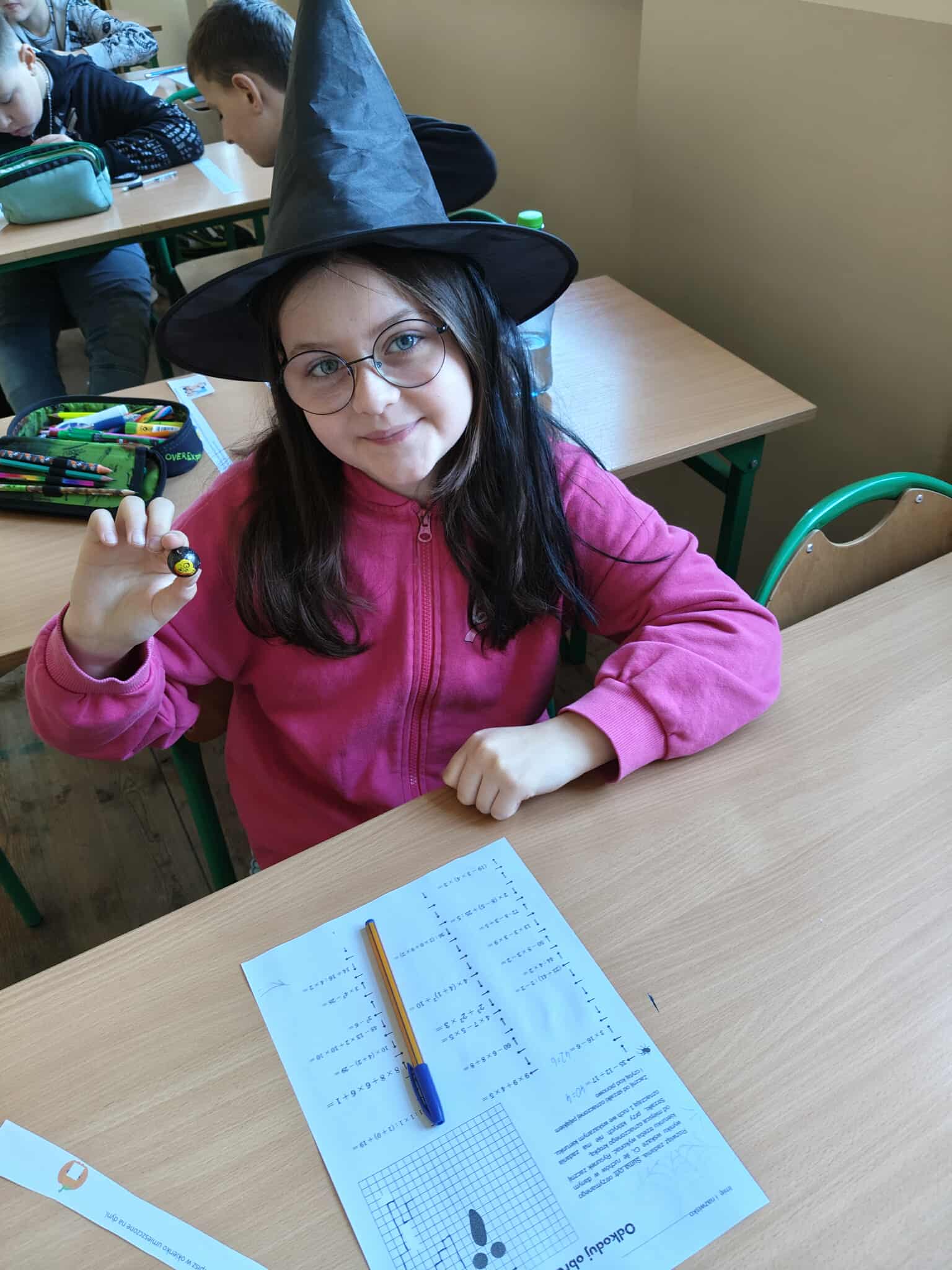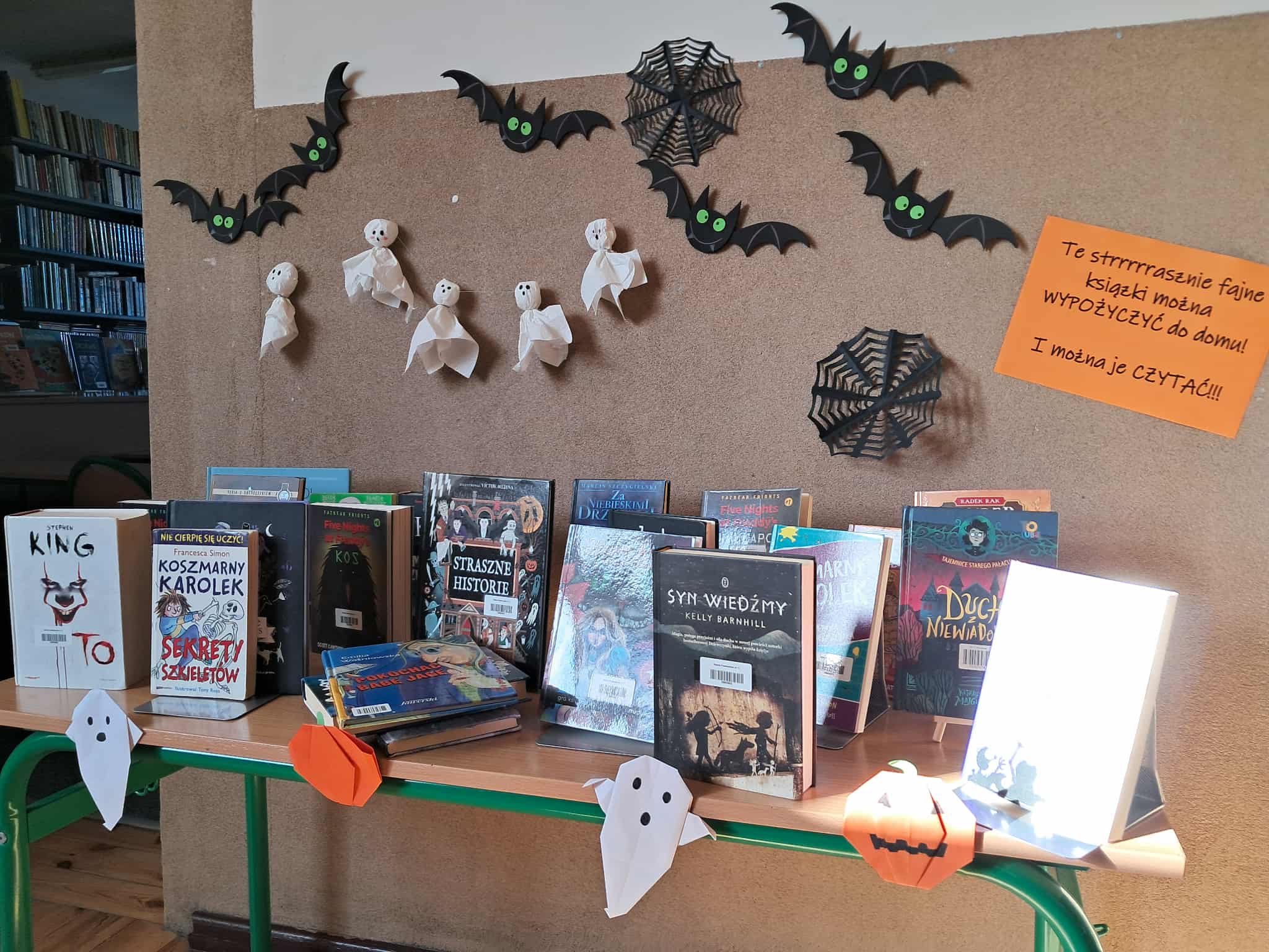 W tym wyjątkowym dniu znalazło się też miejsce na inne atrakcje - halloweenową matematykę pod hasłem "Cukierek albo... zadanie matematyczne" oraz biblioteczna wystawka strrrasznie fajnych książek do wypożyczenia.