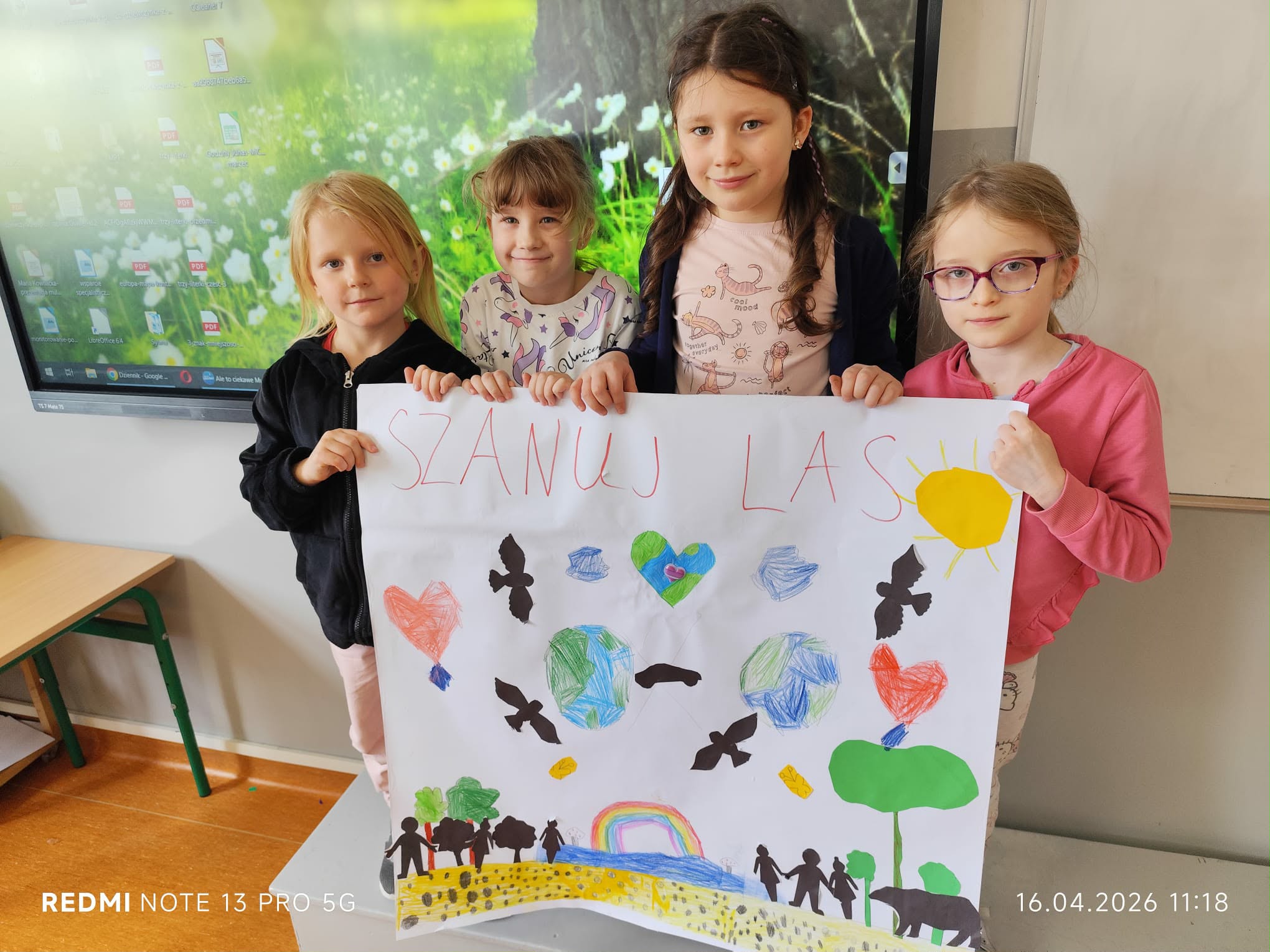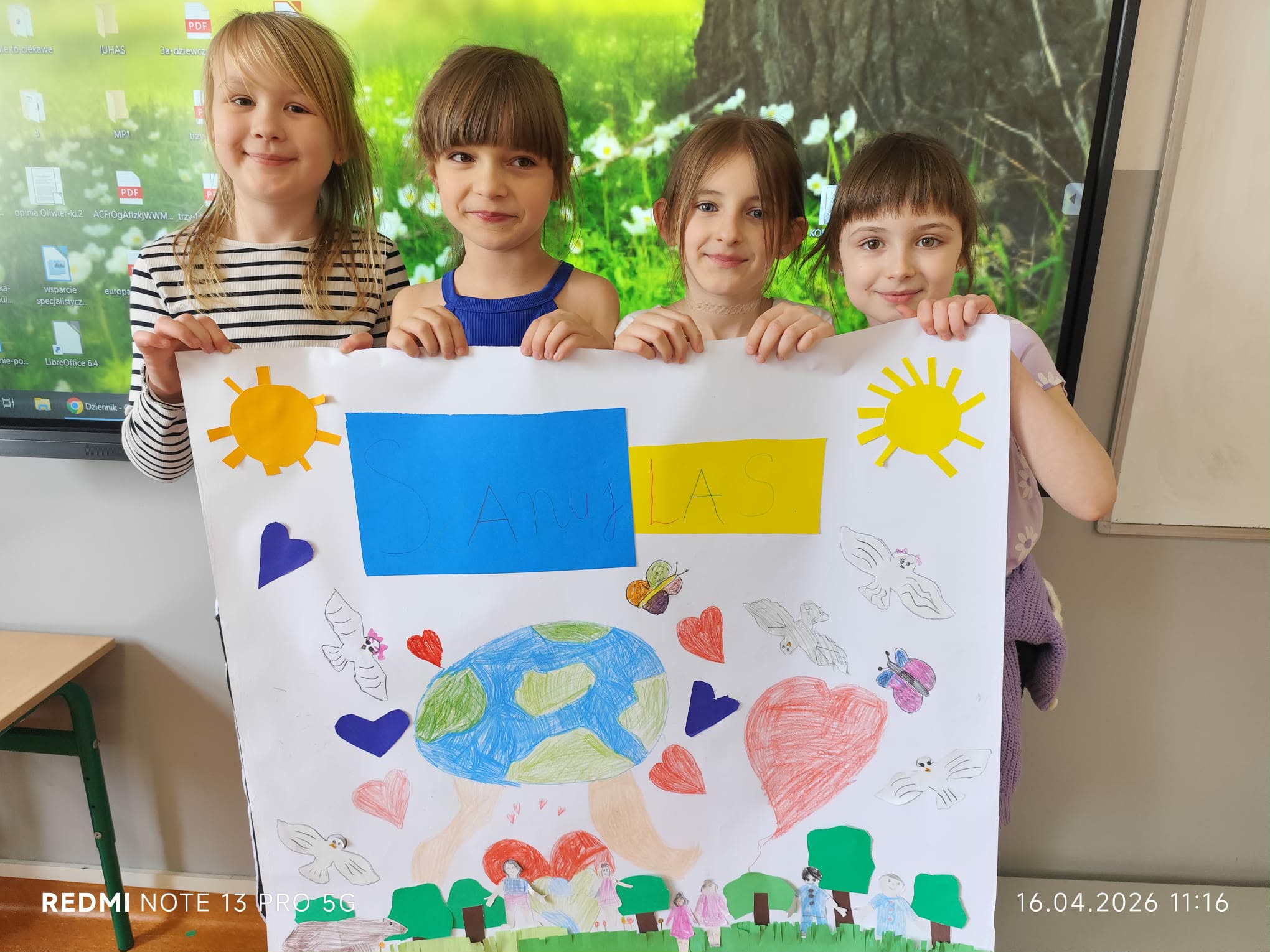 Hasło przewodnie tegorocznej edycji brzmi „Nasza moc, nasza planeta”. Celem dnia jest promowanie postaw proekologicznych i budowanie wspólnej odpowiedzialności za środowisko oraz uświadamianie wpływu codziennych działań na stan planety. Nasza placówka co roku podejmuje działania dotyczące tego święta, rozszerza też je na trwający właśnie Tydzień Ziemi, o którym napiszemy niebawem! Dziś polecamy zdjęcia z pięknego ekologicznego występu klas trzecich oraz klasę 1A prezentującą swoje ekologiczne prace.