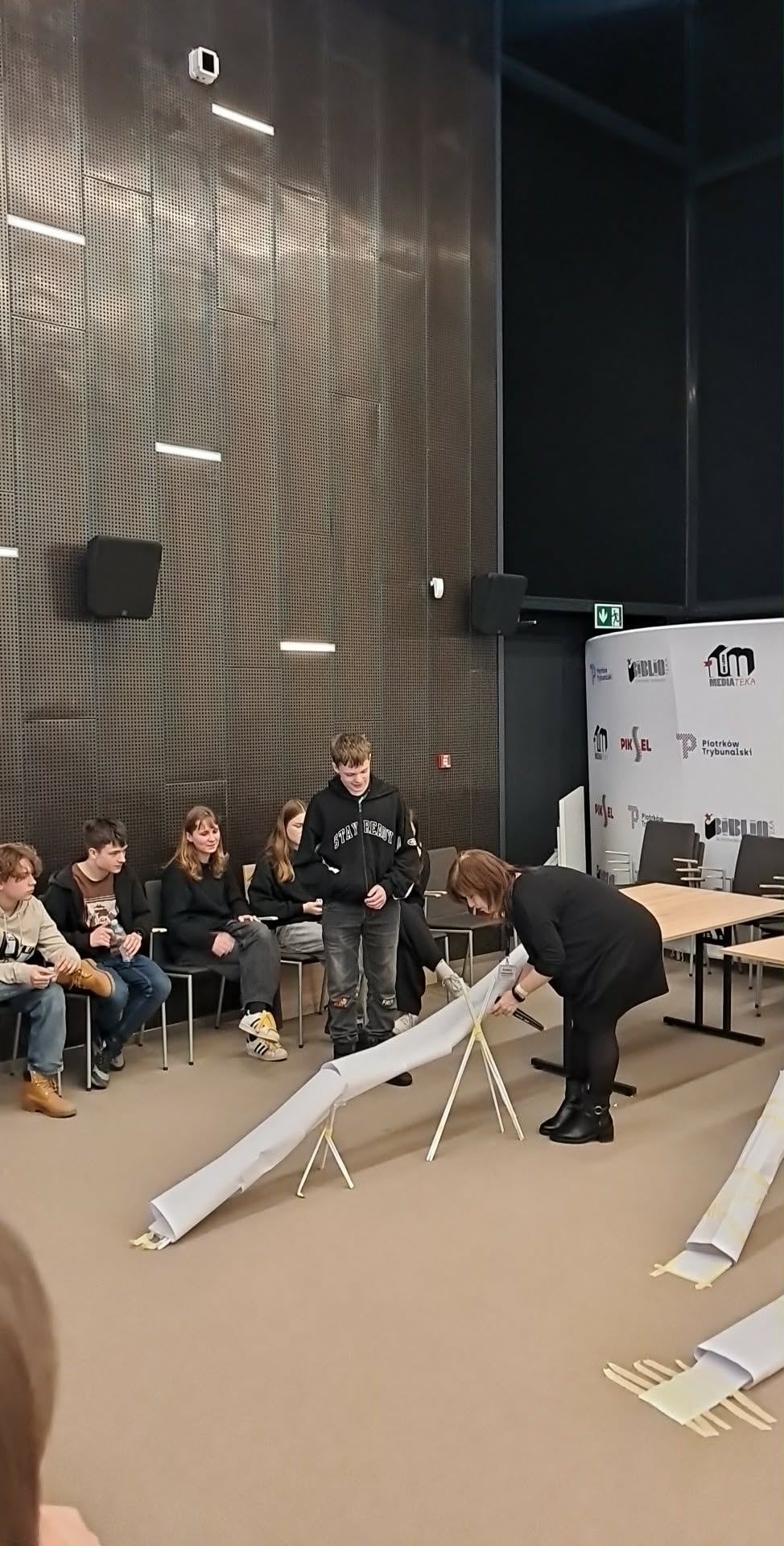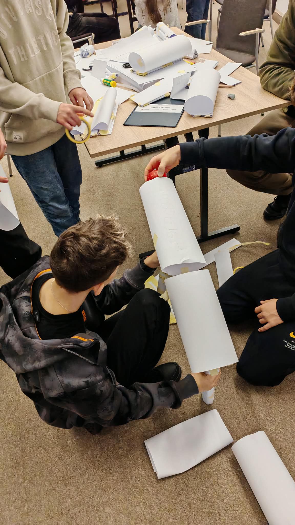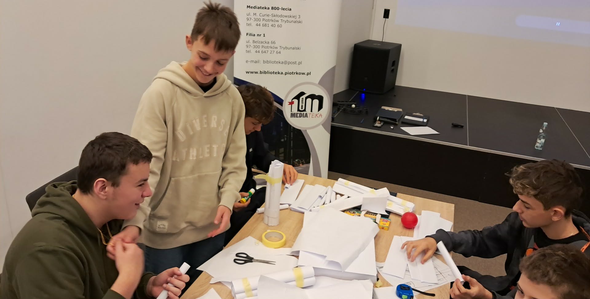 W konkursie brało 10 uczniów naszej szkoły podzielonych na dwie drużyny. Zadanie konkursowe polegało na zaprojektowaniu i zbudowaniu funkcjonalnego tunelu z dostępnych materiałów – kartek papieru, taśmy klejącej, kleju i plasteliny.