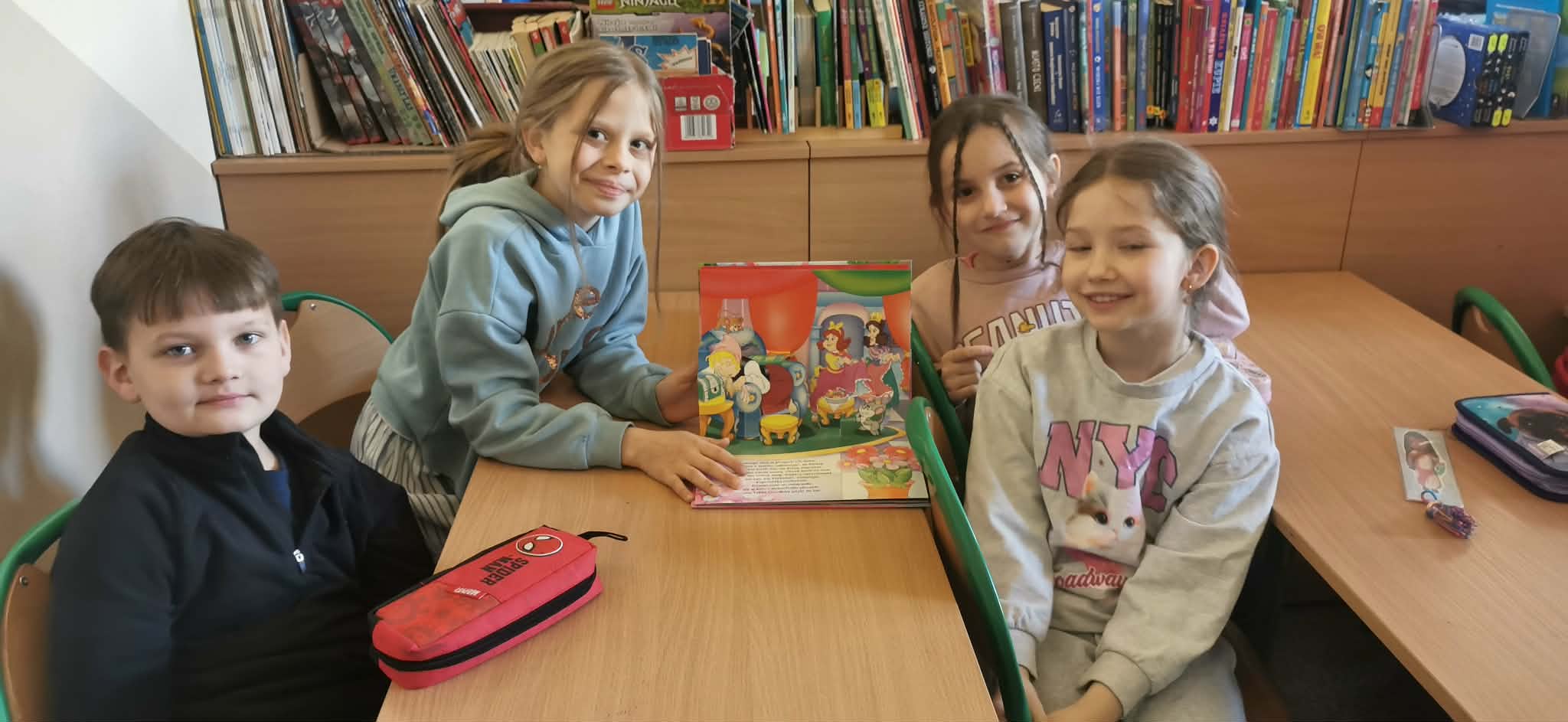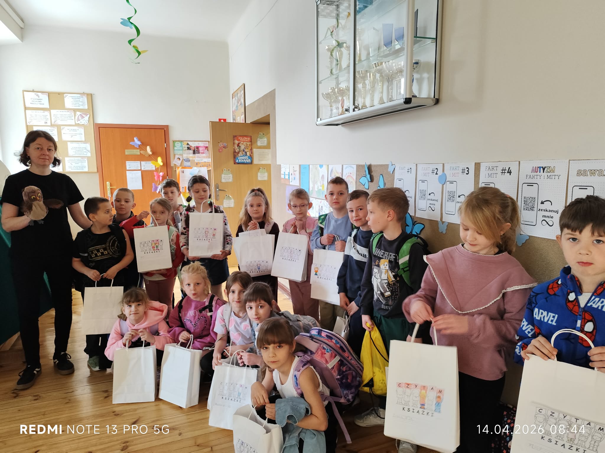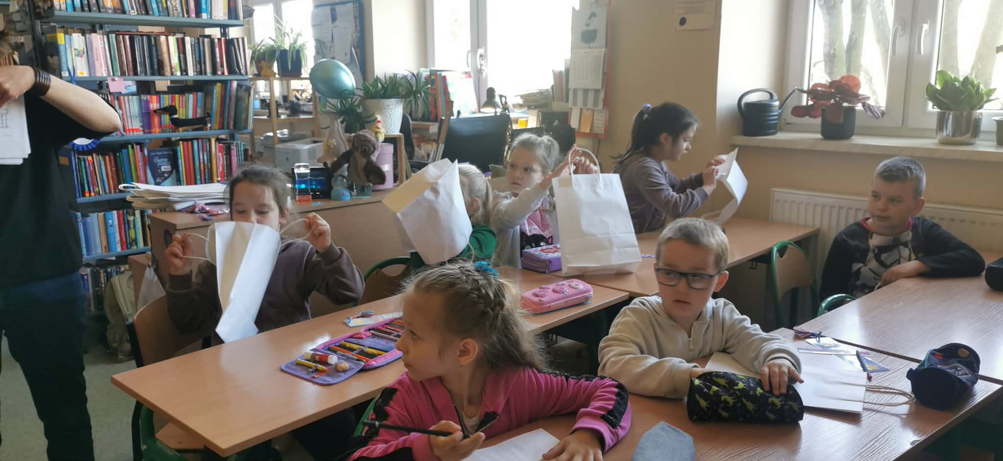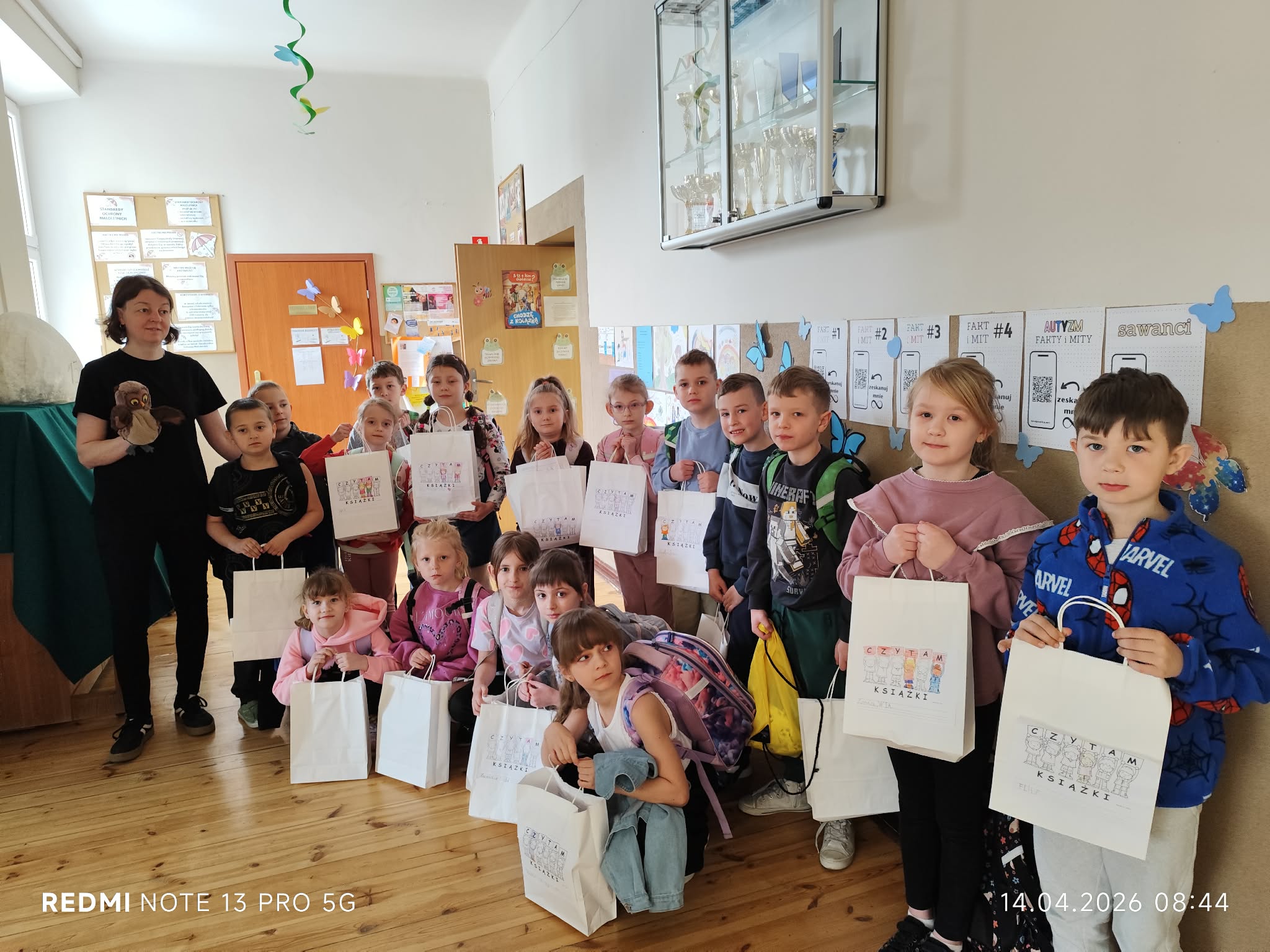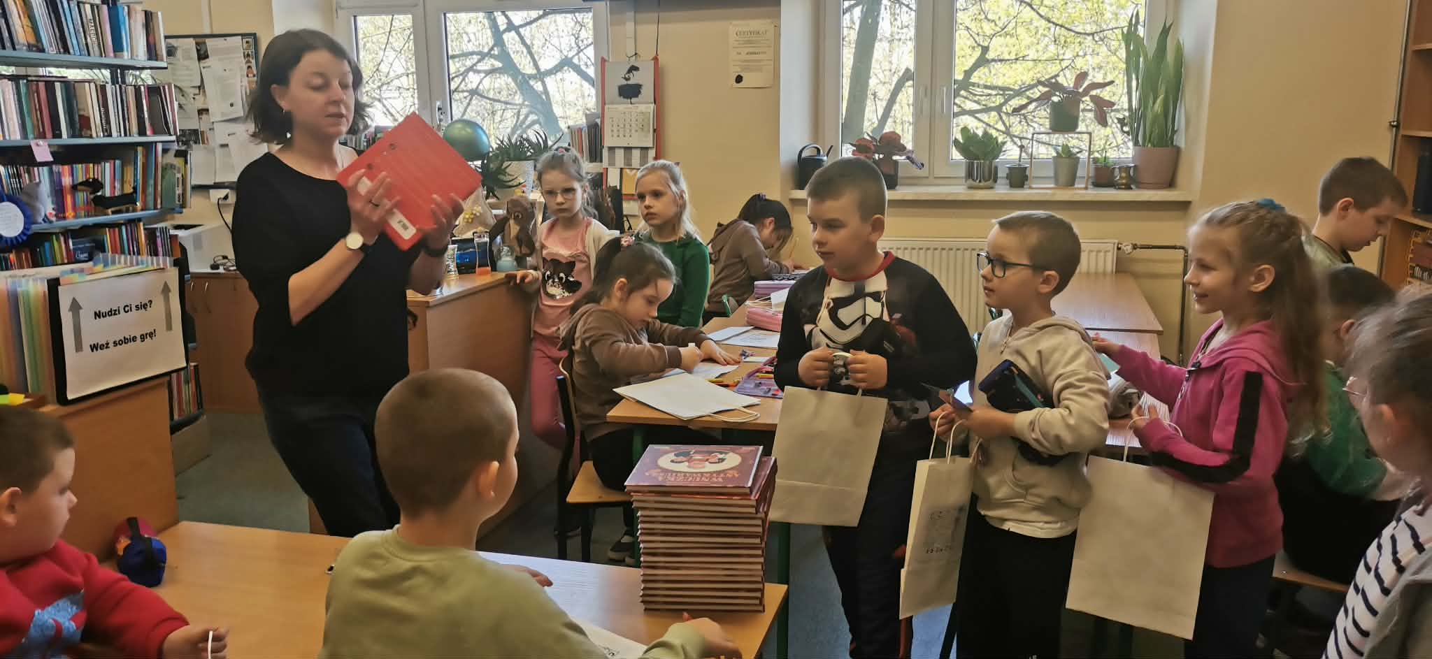 Niemniej atrakcji czekało na dzieciaki w naszej szkolnej bibliotece – były książkowe zgadywanki, kolorowanki i wierszyki oraz poznawanie bibliotecznych tajemnic. Pierwszaki poznały też naszego bibliotecznego rezydenta – sowę Ziutka.