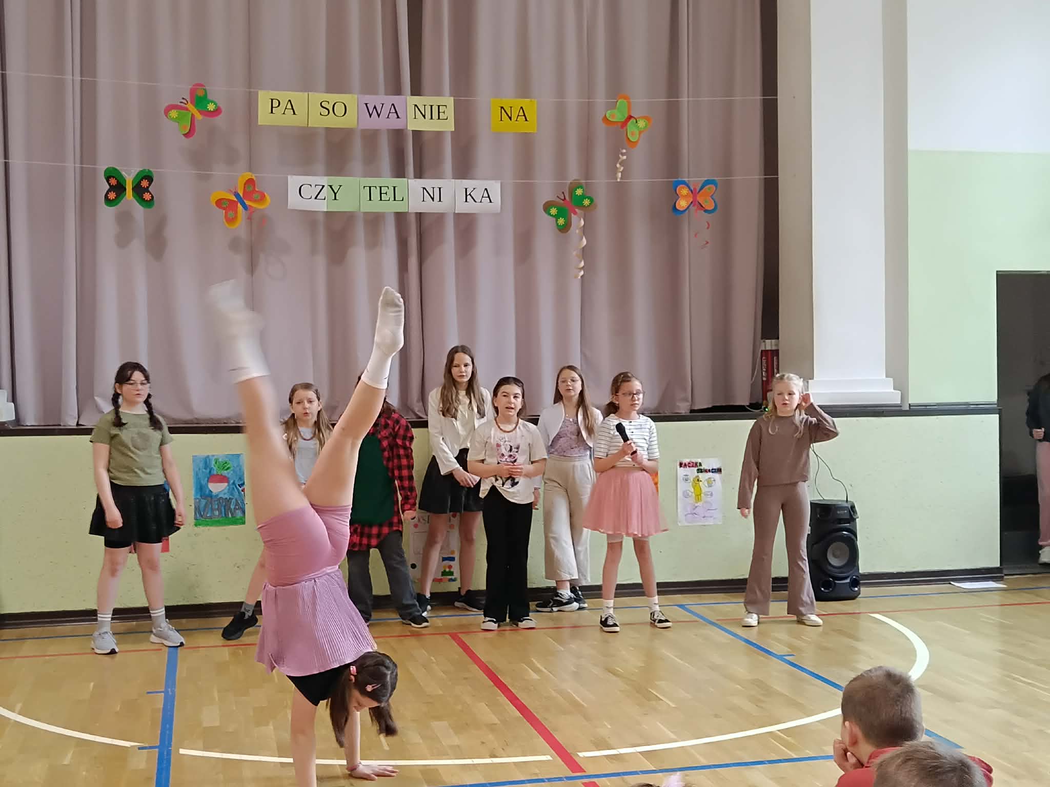 Czytelniczą inicjację rozpoczął występ uczennic klas czwartych, piątych i szóstych, które pod czujnym okiem pani Beaty Czuby przygotowały niezwykle ciekawy program artystyczny. Nie zabrakło w nim tańca, piosenek oraz recytacji klasycznych dziecięcych wierszy.