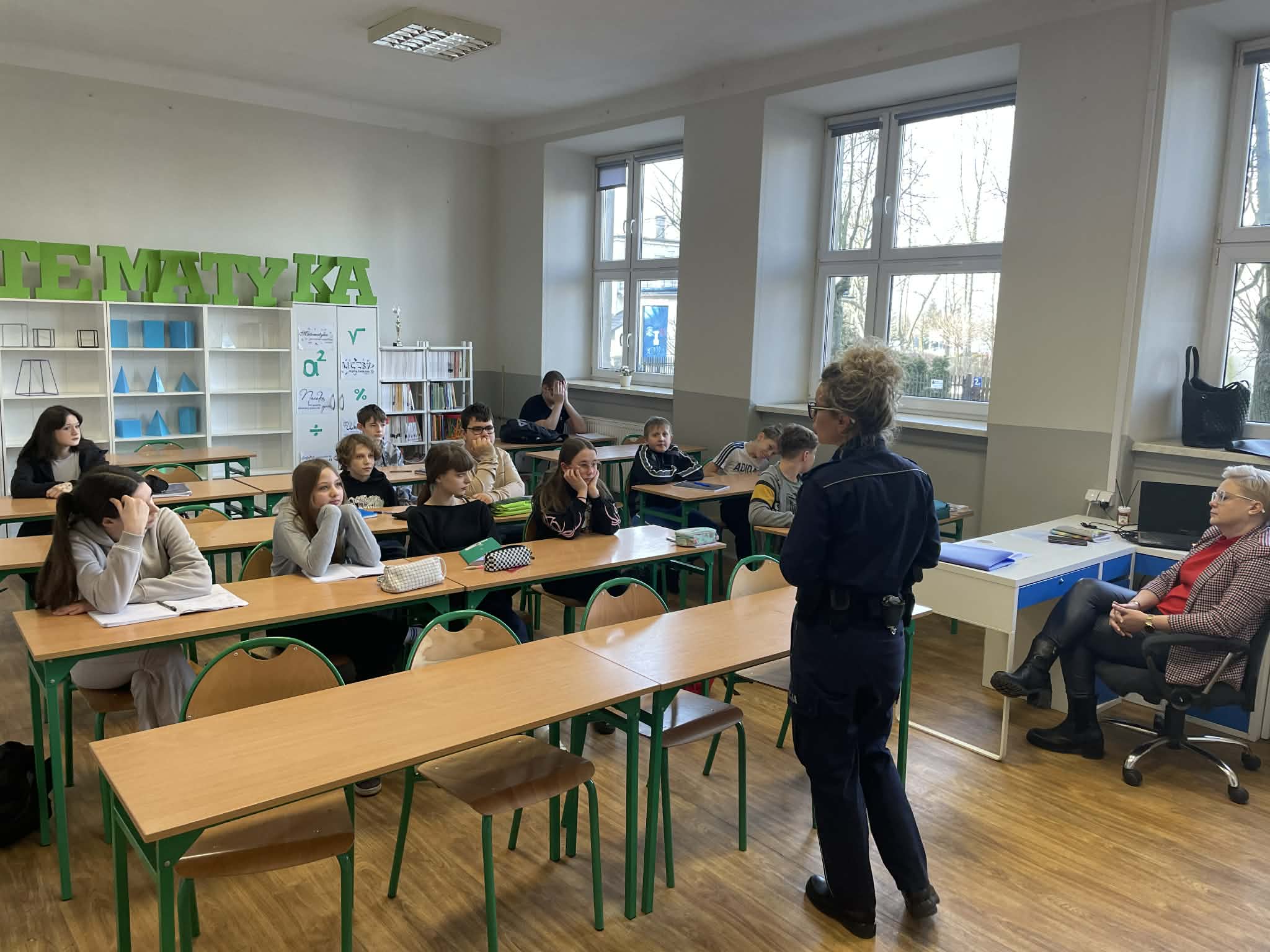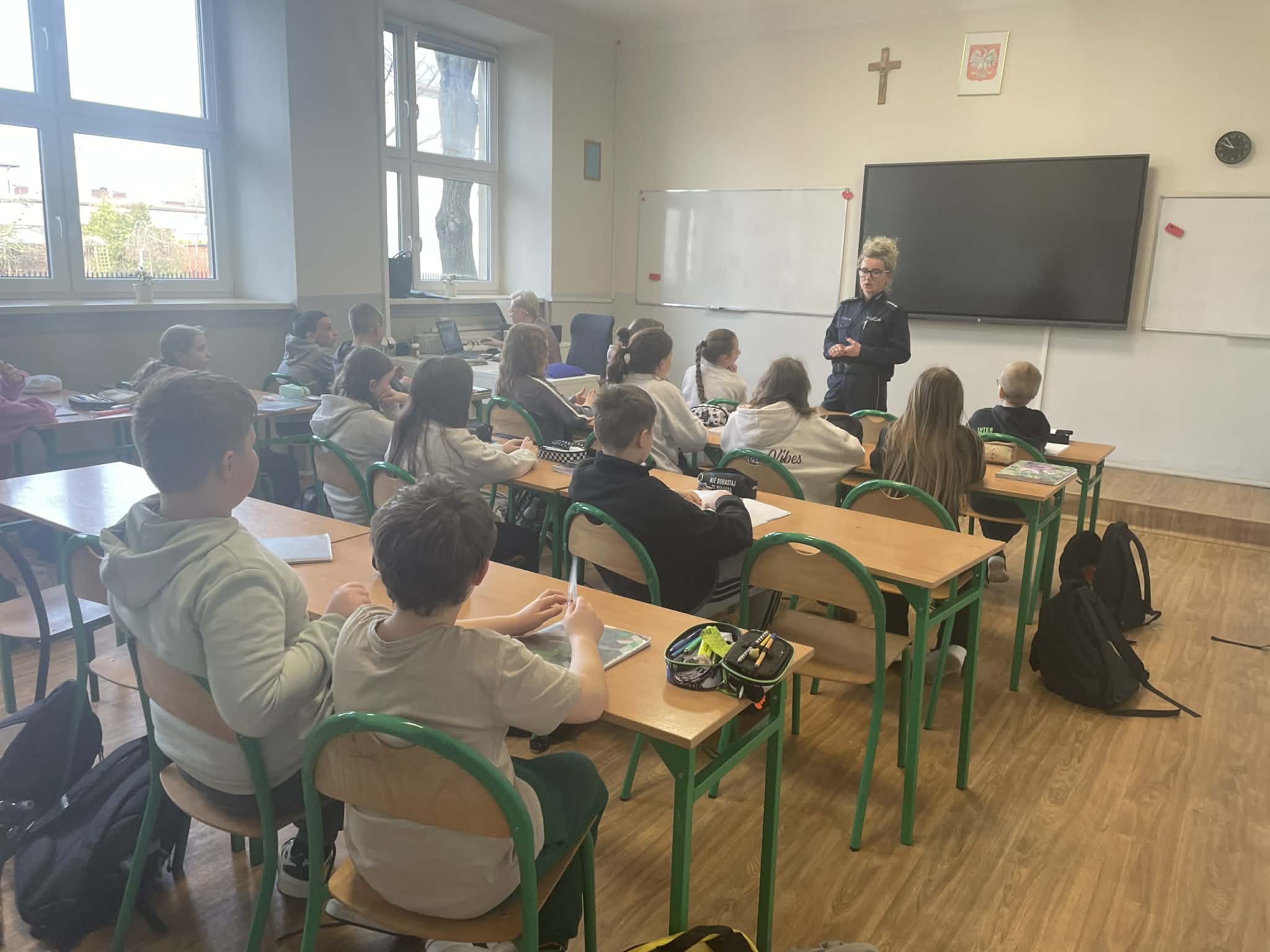 Należą do nich między innymi systematyczne spotkania uczniów z przedstawicielem KMP. W miniony piątek gościliśmy aspirant sztabową Katarzynę Dębińska, która rozmawiała z dziećmi o mowie nienawiści, niewłaściwej realizacji obowiązku szkolnego, czy też odpowiedzialności prawnej nieletnich.