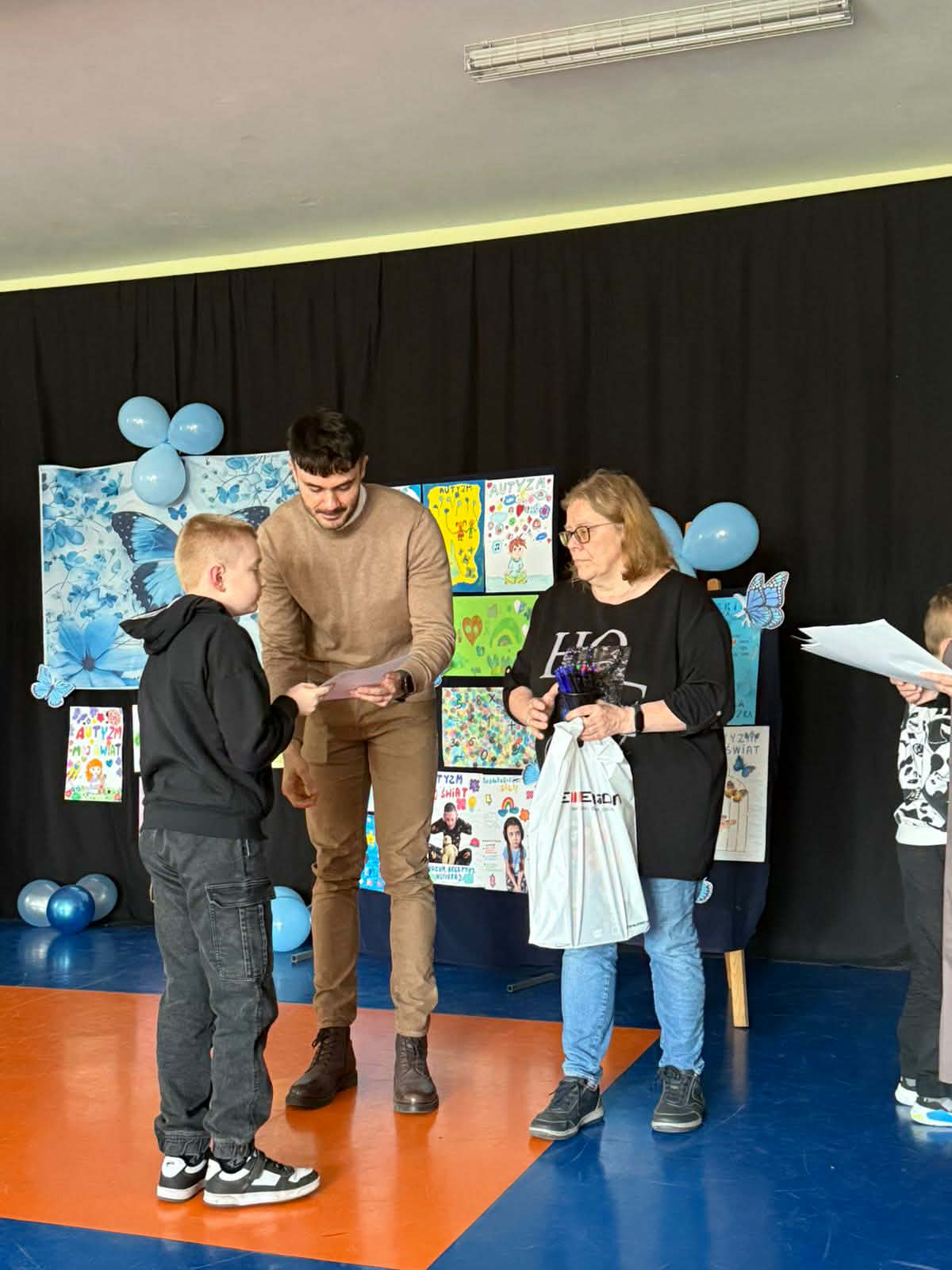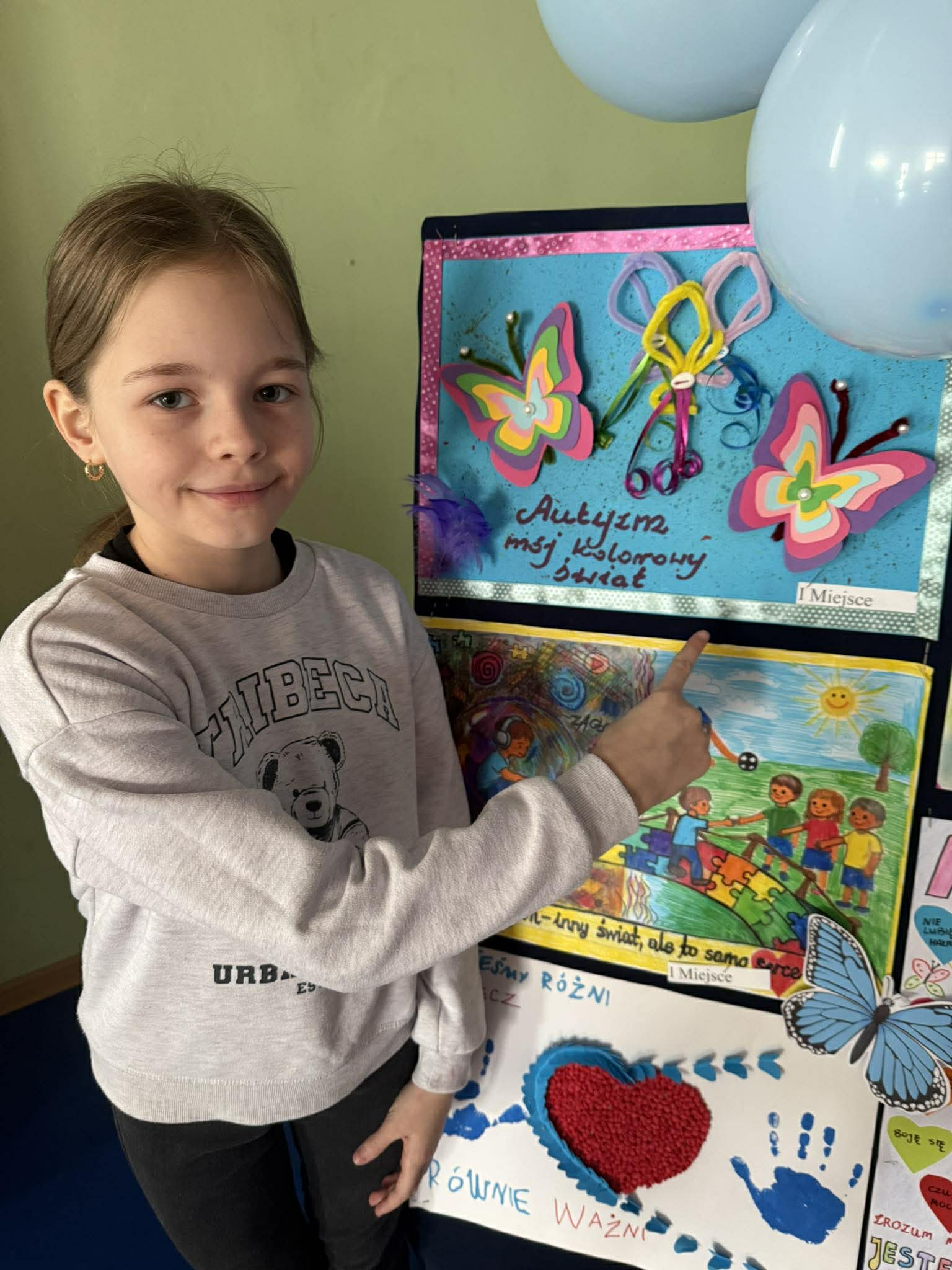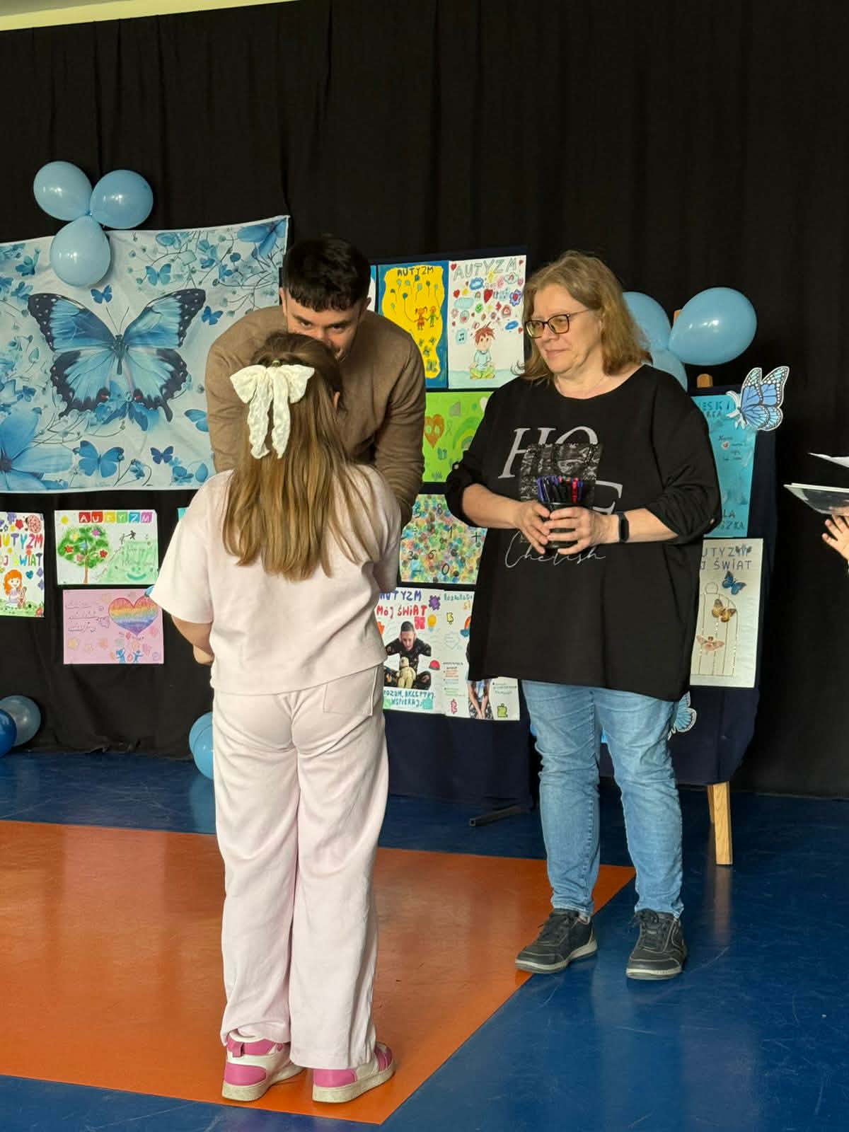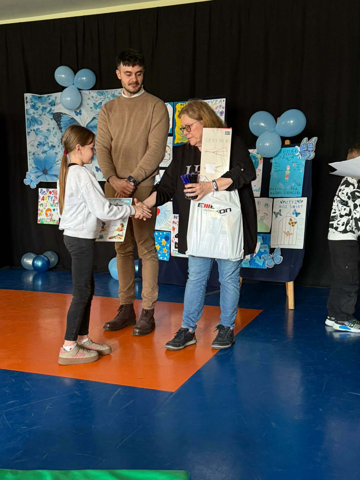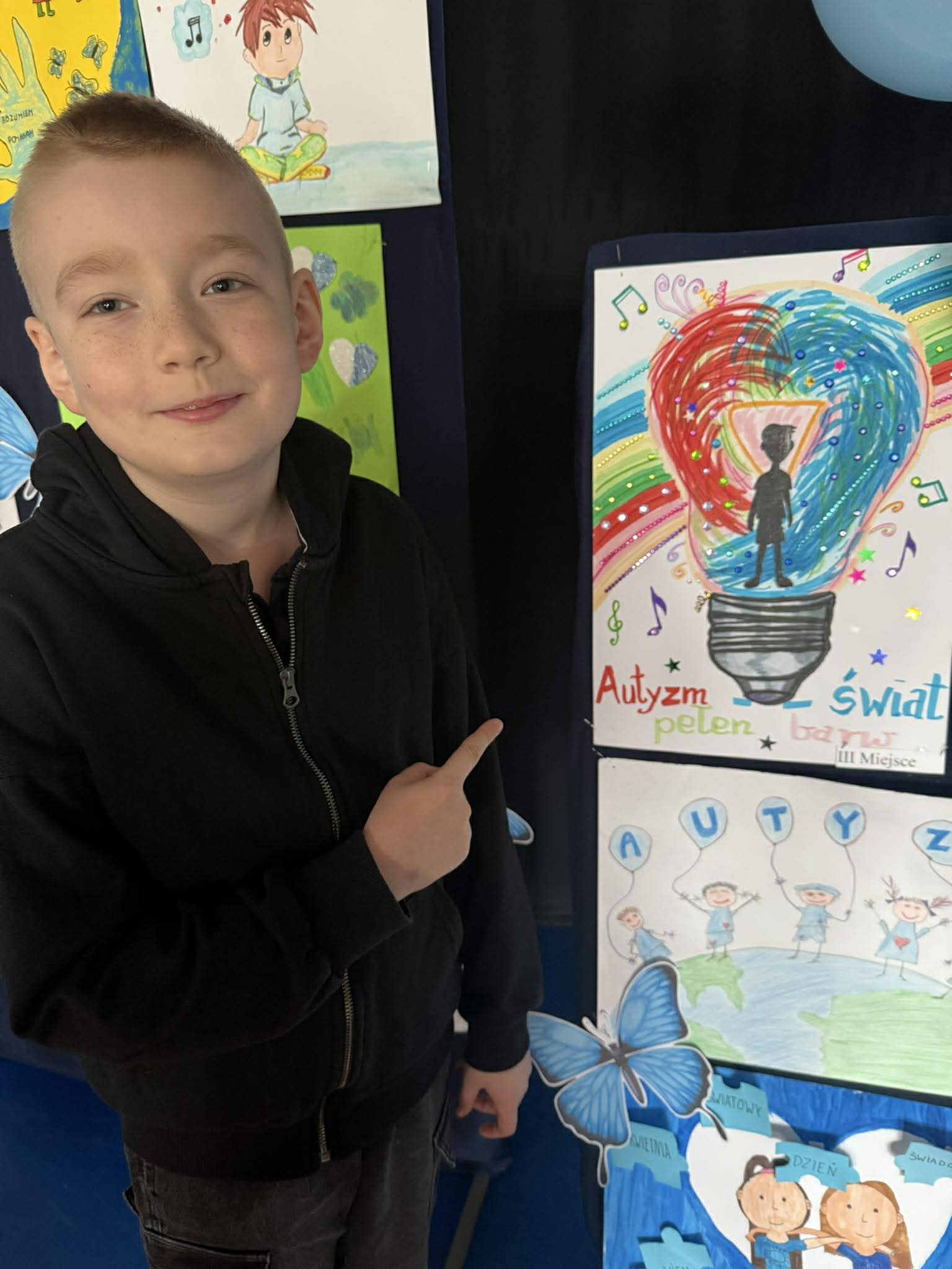 Pierwsze miejsce zdobyła Lena Mysiak, trzecie miejsce Oskar Szymański, zaś wyróżnienie trafiło do Zuzi Wojciechowskiej. Poniżej nasi uczniowie ze swoimi wspaniałymi pracami poświęconymi tematyce autyzmu, różnorodnośći i tolerancji oraz podczas ceremonii wręczenia nagród.