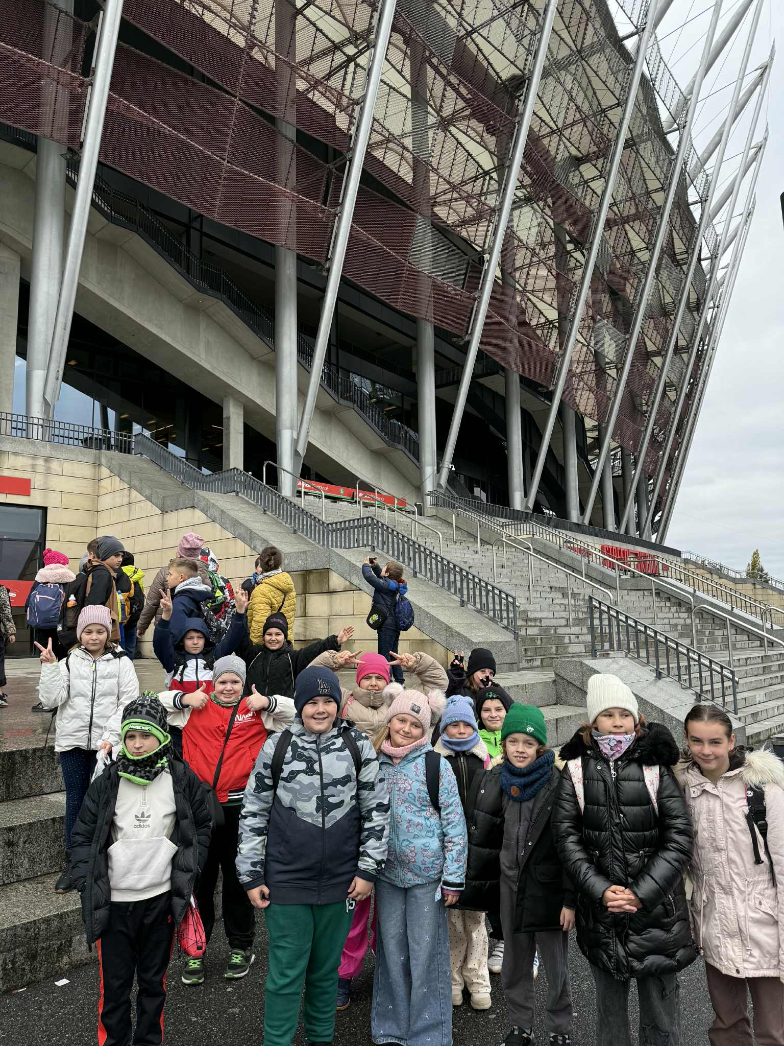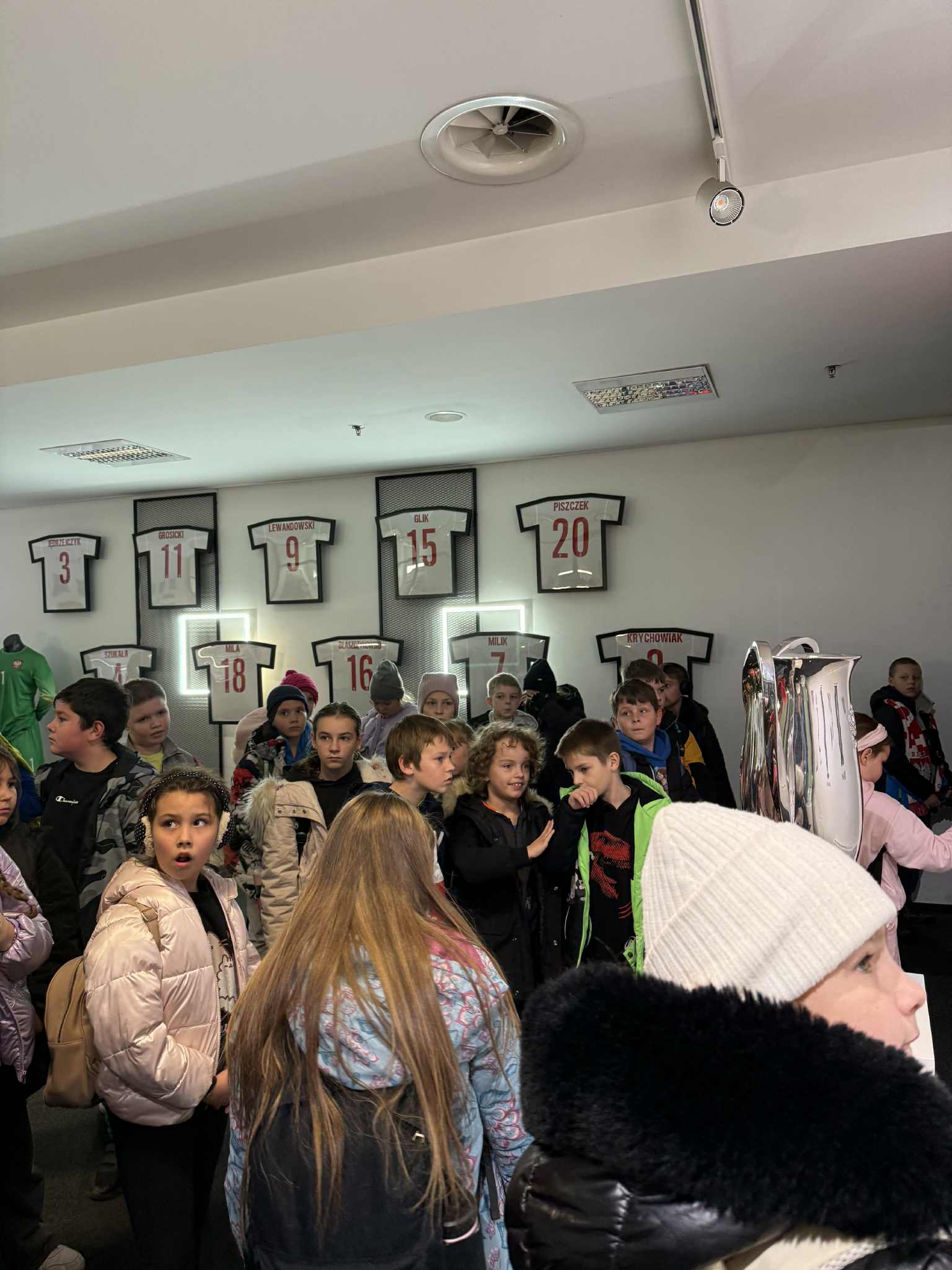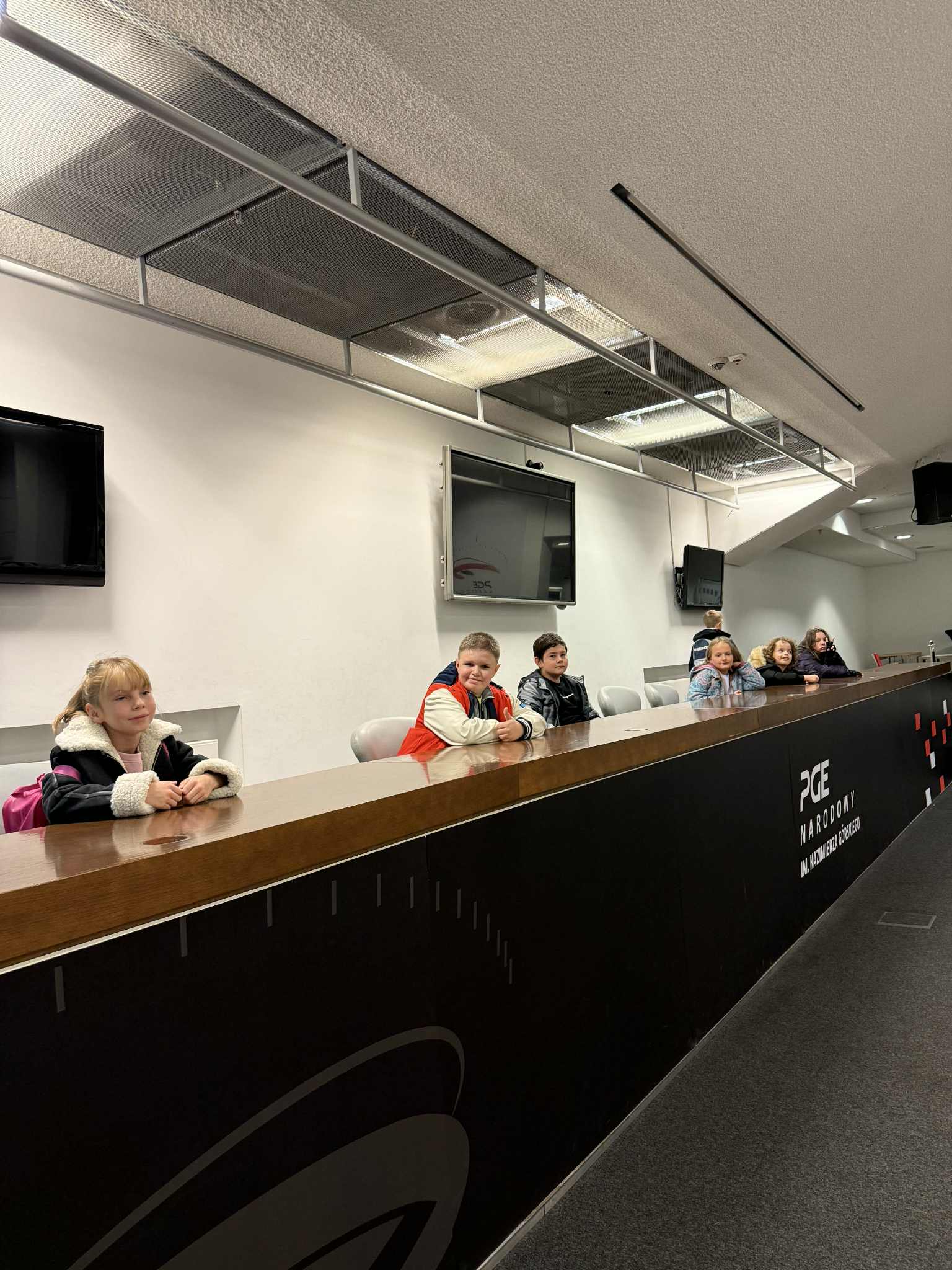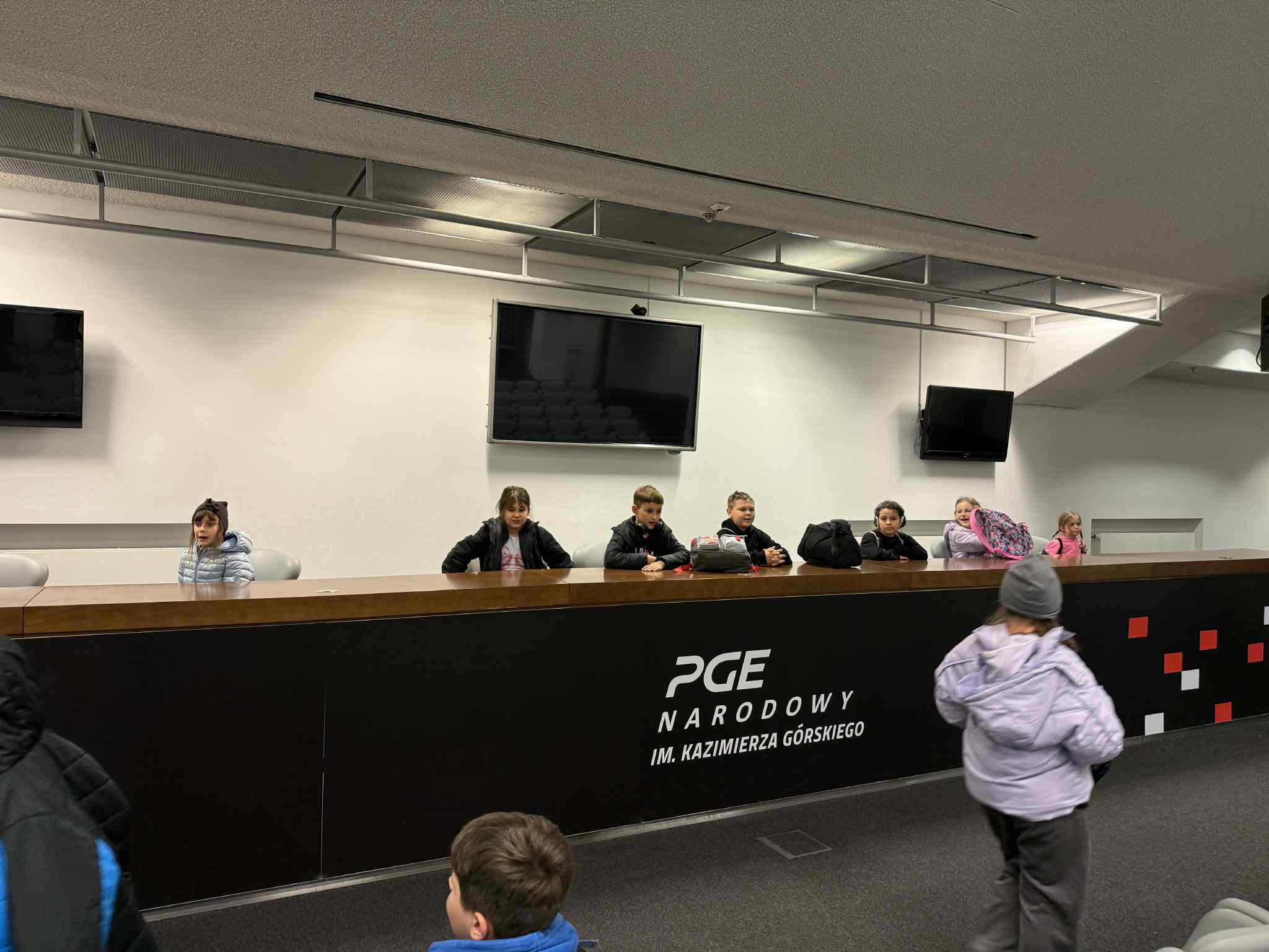Pierwszym punktem programu był Stadion Narodowy, gdzie dzieci mogły zobaczyć kulisy jednego z najnowocześniejszych obiektów sportowych w Polsce. Z zainteresowaniem oglądały trybuny, szatnie zawodników oraz pomieszczenia techniczne stadionu.